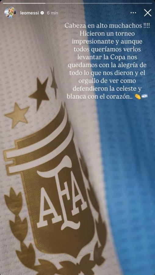 Lionel Messi hizo público un sentido mensaje apenas consumada la derrota de la Selección Argentina Sub 20 en la final del Mundial de Chile por 2-0 ante Marruecos, en el Estadio Nacional de Santiago.